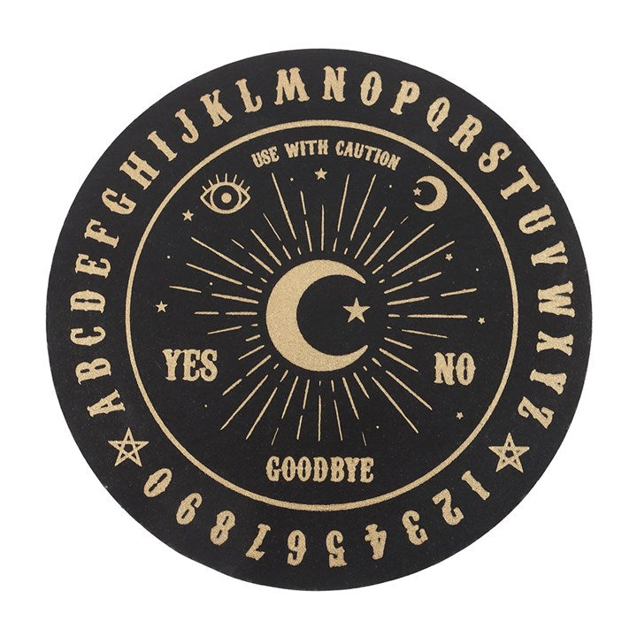 Store precious necklaces, rings and bracelets in this black jewellery box, decorated with a mystical talking board design in a gold finish. The jewellery box features a handy mirror in the lid - perfect for checking if accessories match the look! As well as offering safe keeping for your treasures, this jewellery box is perfect for displaying on dressing tables or bedside tables as a finishing touch to bedroom decor.